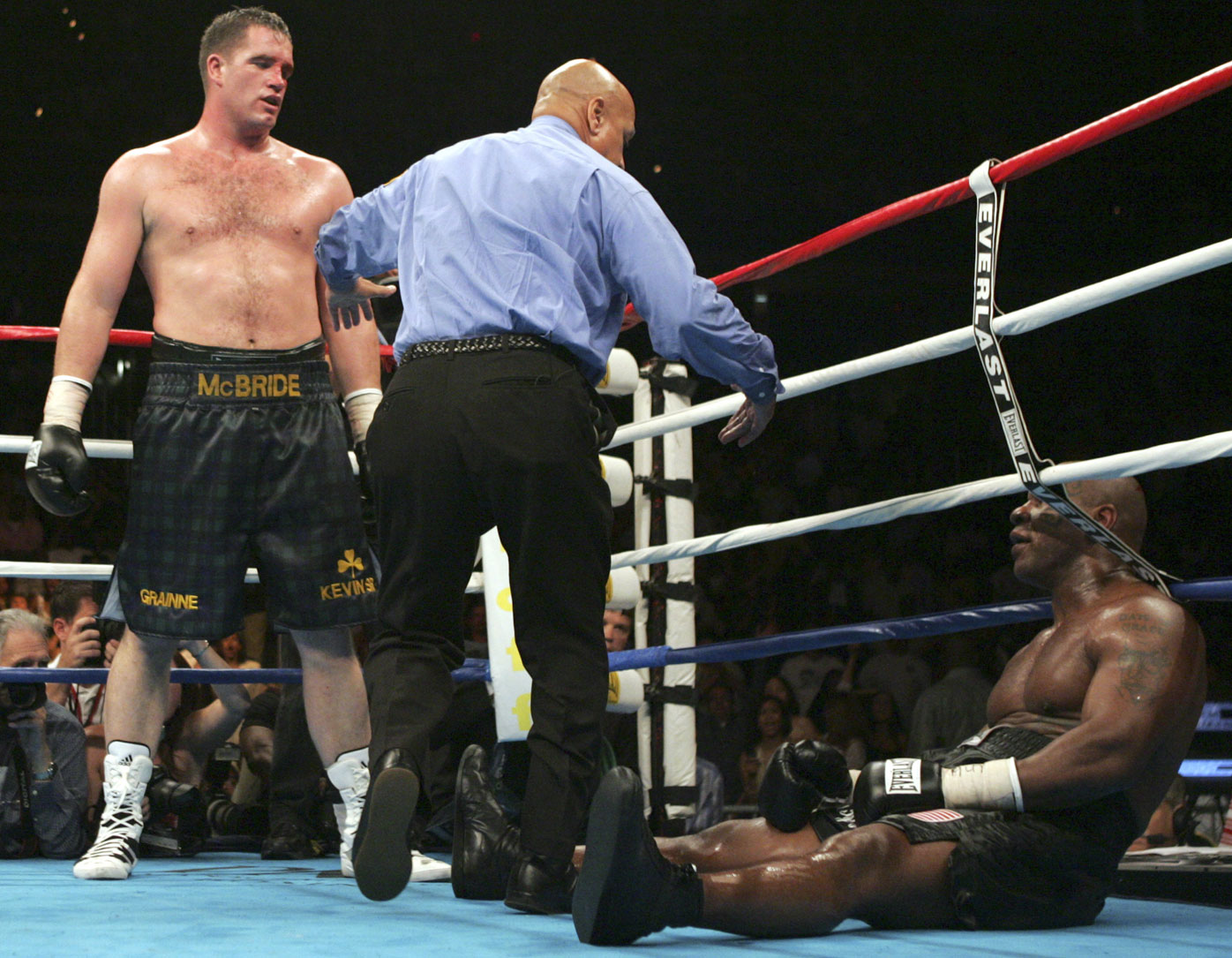 The bout in Muhammad Ali's hometown did not go well. Tyson dominated the opening round but also tore a knee ligament, which needed surgery post-fight. He quickly faded and was unable to beat the count when knocked down at the end of the fourth round.